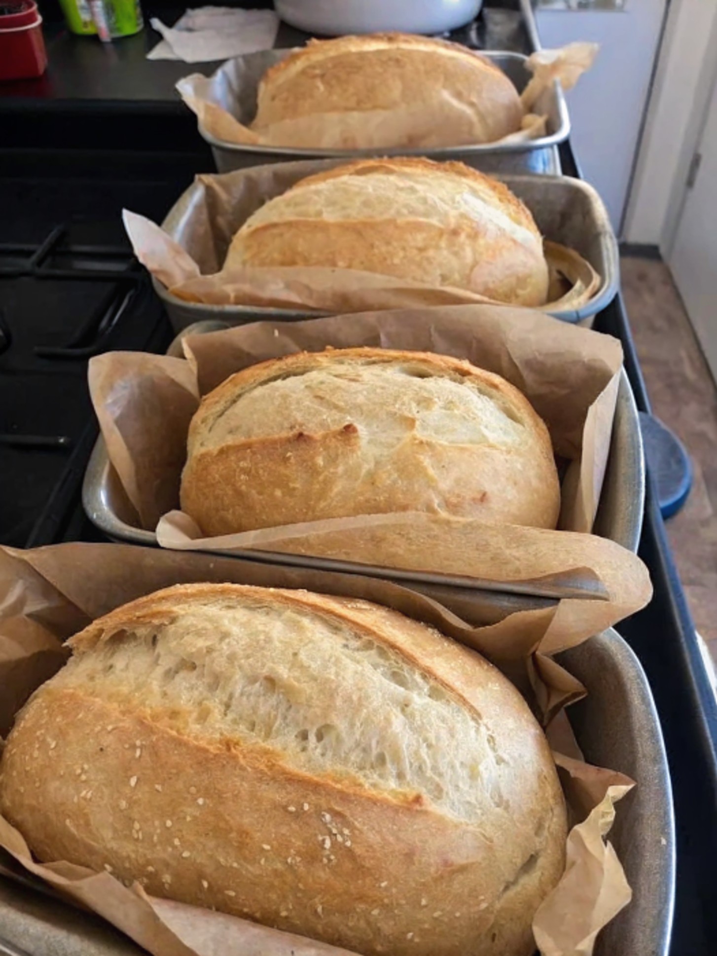This bread forms through the interaction of flour, water, yeast, and time. The yeast ferments the sugars, producing gas that makes the dough rise. The slow rise and proper hydration result in a soft crumb and slightly chewy crust—perfect for slicing and serving.