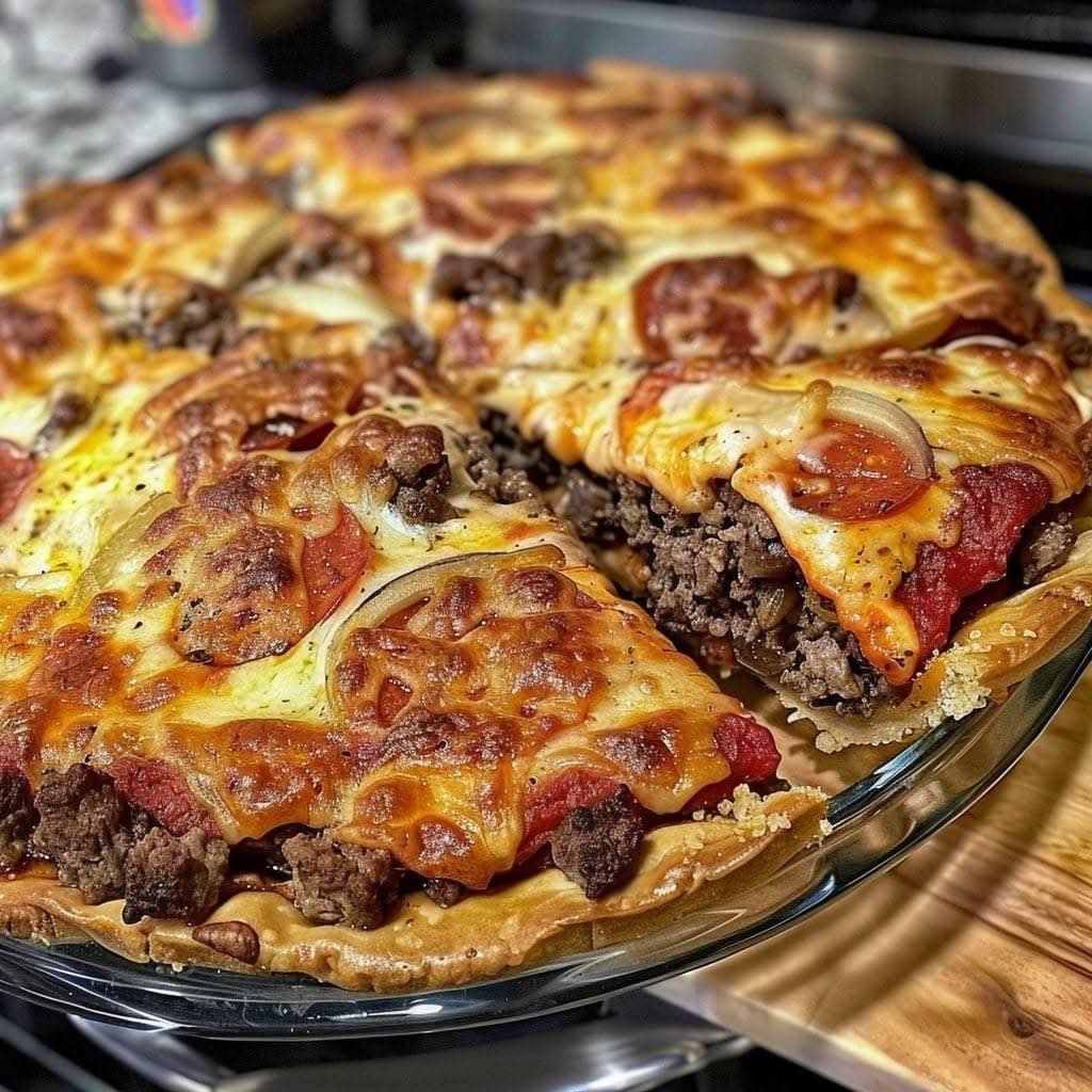 Serve the pie warm and enjoy this delicious fusion of pizza and burger flavors!